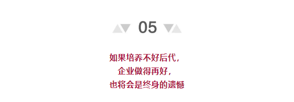 最后,用方太集团名誉董事长茅理翔的一句话作为结尾“培育接班人要作为一代企业家和整个家族的头等大事来抓,企业未来的竞争是二代与二代的竞争、三代与三代的竞争,一代企业家能力再强,企业做得再好,如果不能把二代、三代培养好,那将会成为终身的遗憾”。