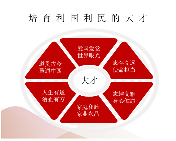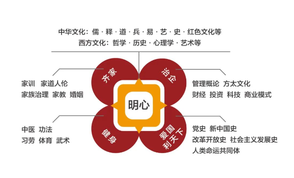 用6个关键词来概括就是情怀高远、定位尖端、对象精准、内容全面、明师辅导、实战实用,这便形成了新利娱乐网站首页登录的5个教学体系,明心重道;中西合璧;因材施教;知行合一;两代同修。