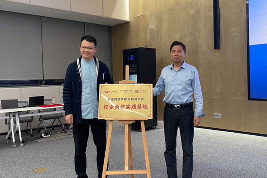 最后,由邵际树、曾明志分别代表双方签署共建校外实践基地合作协议,共同为宁波财经学院与新利娱乐网站首页登录校企合作实践基地揭牌。