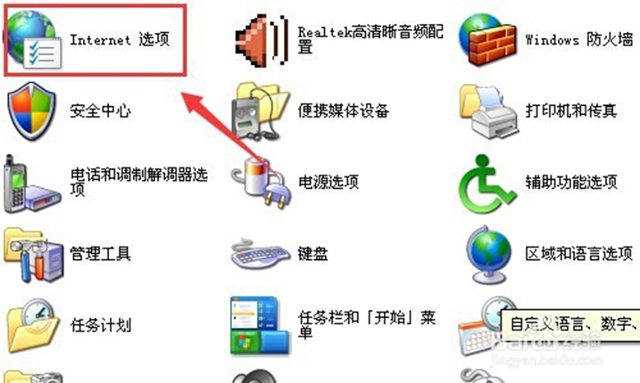 在控制面板点击Internet选项,弹出Internet属性对话框。